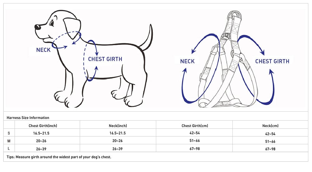 Designed for comfort and security, the harness features adjustable straps that provide a snug, secure fit for dogs of all sizes. Built with high-density 100% polyester webbing for lasting durability, it pairs an eco-friendly plastic buckle with a chromed steel D-ring for a reliable leash attachment point.